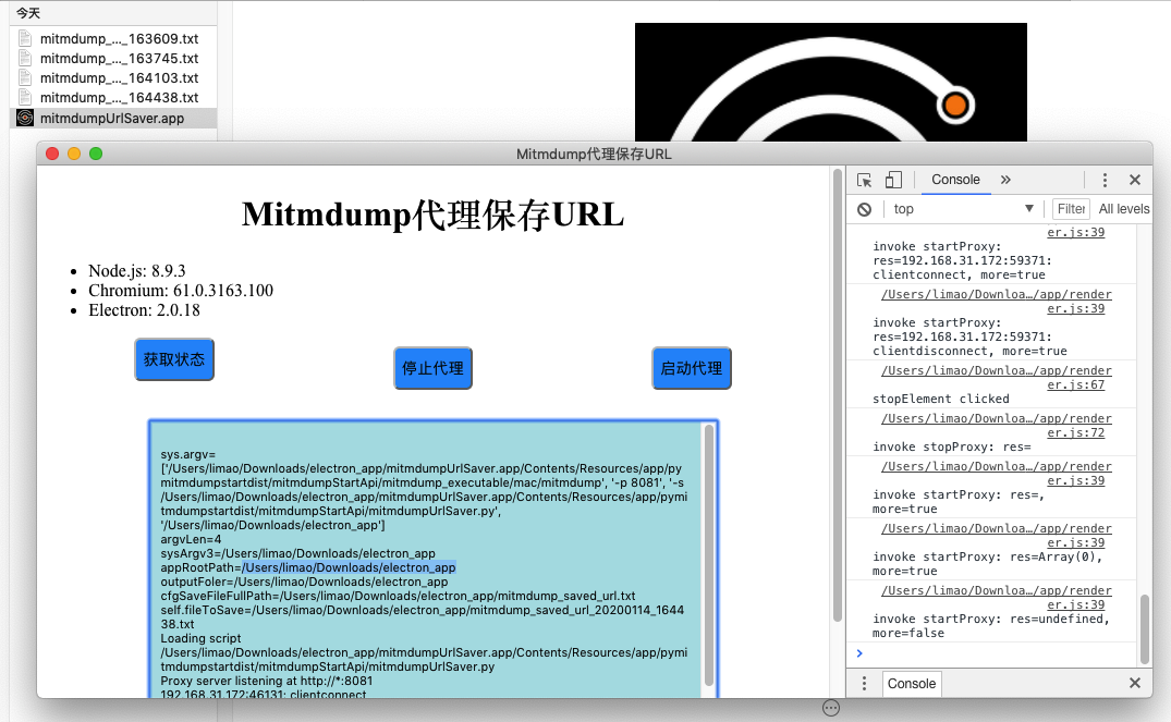 app.getAppPath = /Users/limao/Downloads/electron_app/mitmdumpUrlSaver.app/Contents/Resources/app